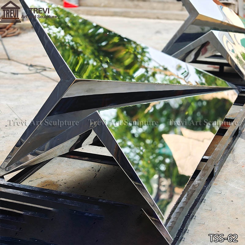 Applying high-polished mirror stainless steel, the surface is as smooth as a mirror, creating different light and shadow effects from different angles, offering a unique charm. This stainless steel mirror sculpture is composed of multiple stainless steel pieces, with meticulous polishing around the seams, achieving a natural and modern appearance.