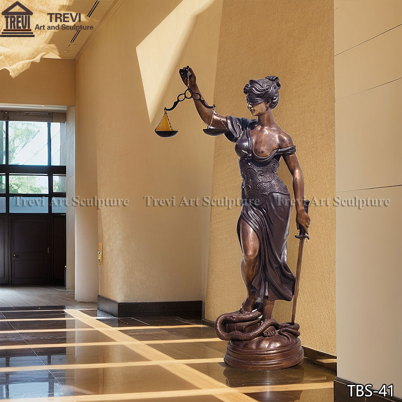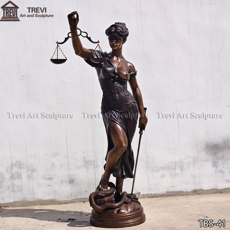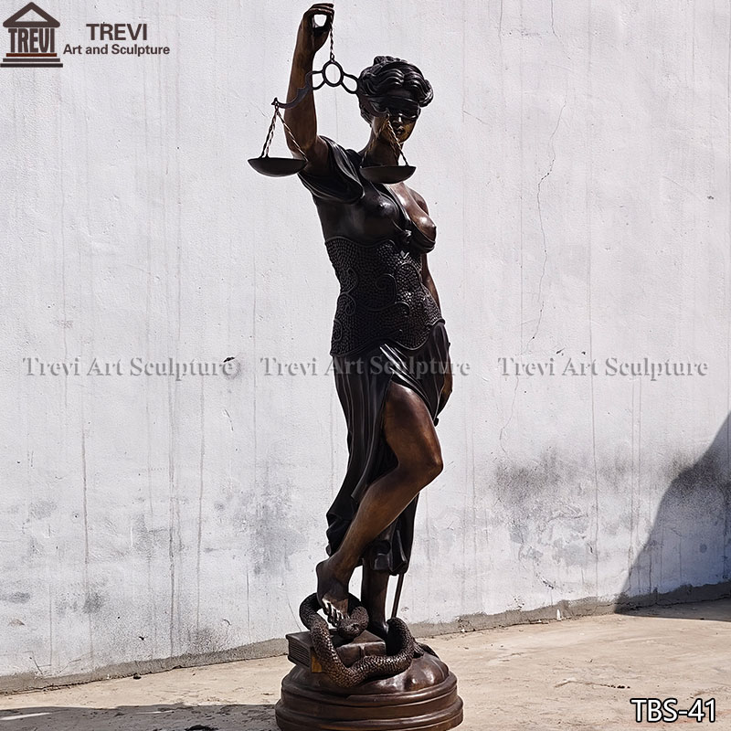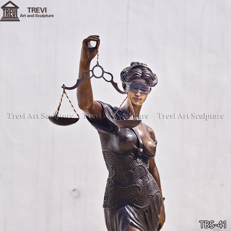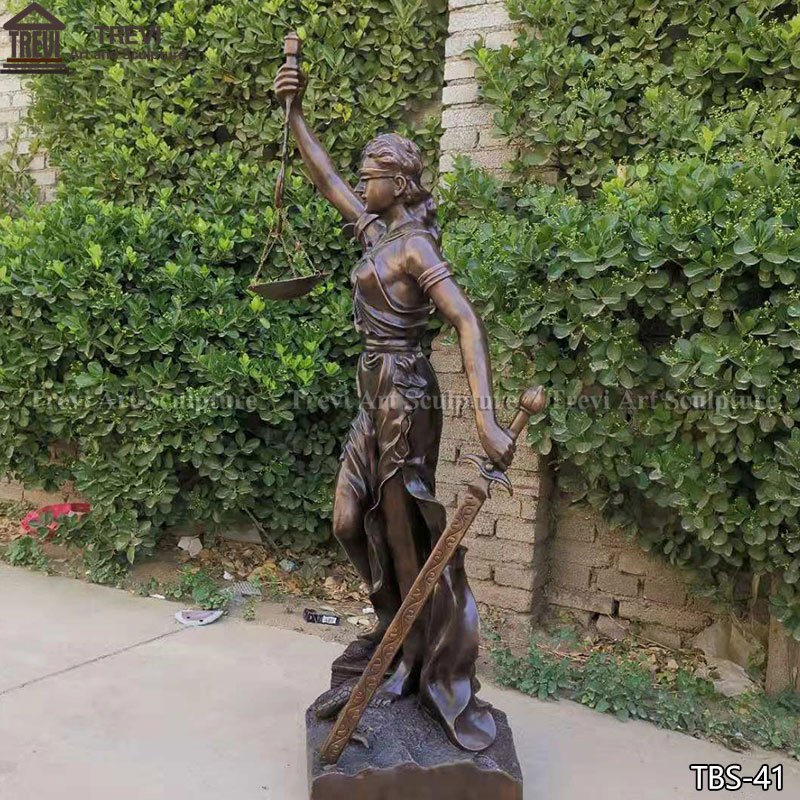 This bronze blind lady justice statue with a size of 1.8 meters (about 71 inches), and has been highly restored to retain the classic shape and details of the original.