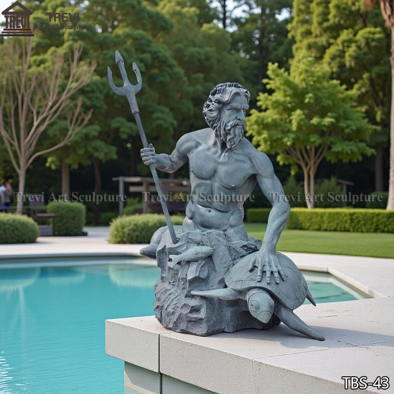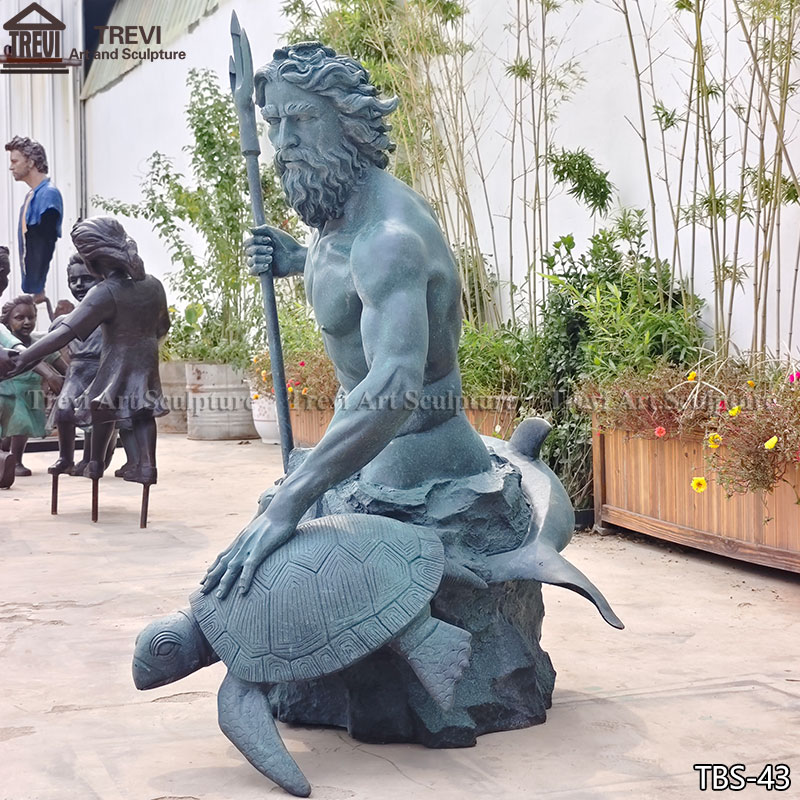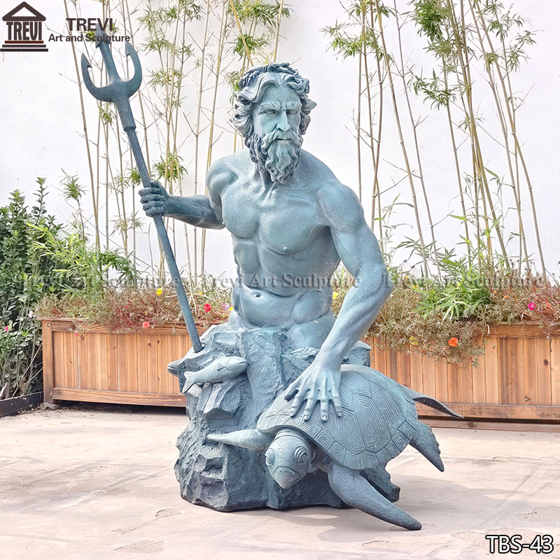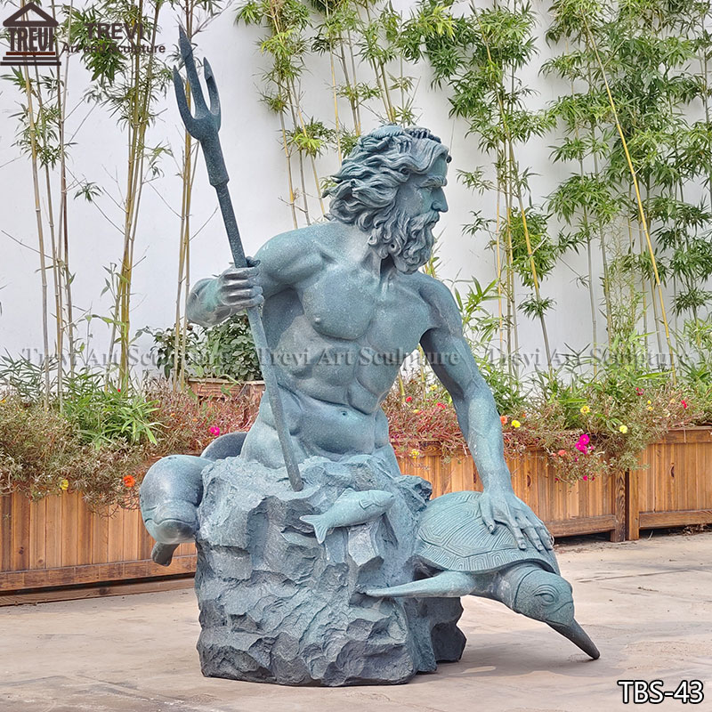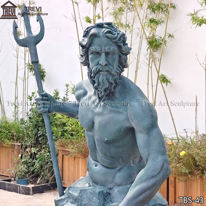 This bronze Greek Poseidon statue is 1.2 meters (about 47 inches) high, presents an exquisite blue tone as a whole, and is processed with advanced chemical coloring technology. Not only is the color uniform and rich in texture, even if it is placed outdoors for a long time, the color of the statue’s surface will become more natural and beautiful over time, showing unparalleled artistic charm.