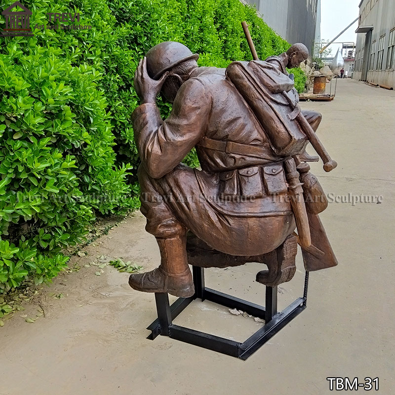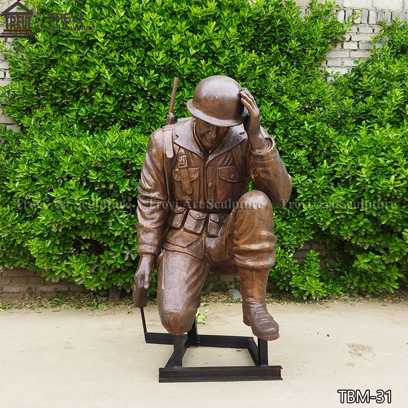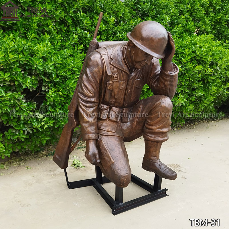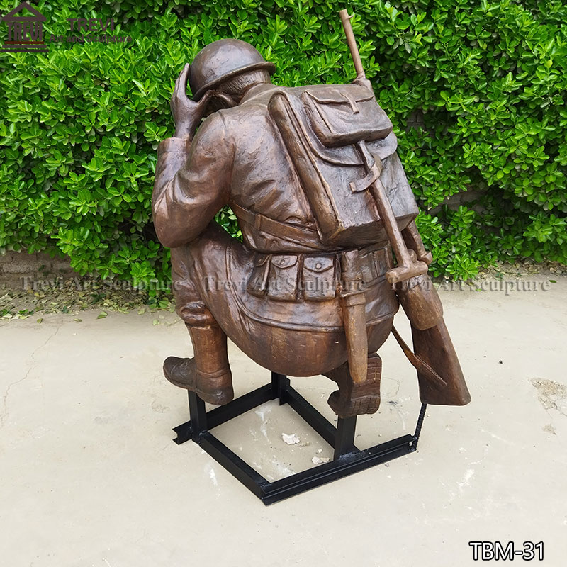 Our factory cast this bronze kneeling soldier statue, in which the soldier kneels on the ground, covers his face with his hands, and carries a gun on his back, appropriately reflects this noble spirit. This statue is made of high-quality bronze, carefully carved and polished, and is suitable for military bases, memorials, or any place where you want to express respect and remembrance.