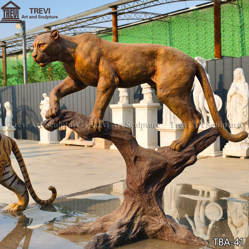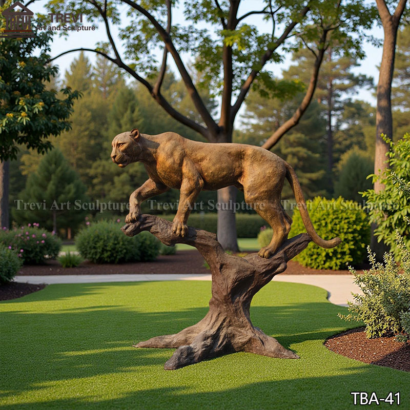 We use advanced bronze chemical coloring technology to make the color of the statue more realistic. Through a series of complex chemical oxidation processes, the hair of the mountain lion presents different shades of brown and yellow, which contrast sharply with the dark brown of the tree trunk. It is very artistic. This coloring process not only makes the statue more three-dimensional but also effectively prevents fading and maintains a long-lasting visual effect.