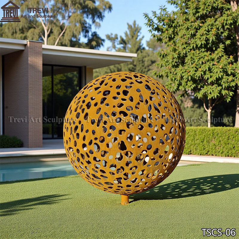 Trevi factory specializes in making various types of corten steel sculptures, providing a variety of sizes, styles and customization services to meet the diverse needs of customers. Welcome to contact us for more design plans and quotes for hollow ball sculptures!