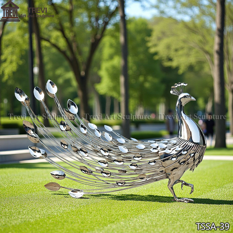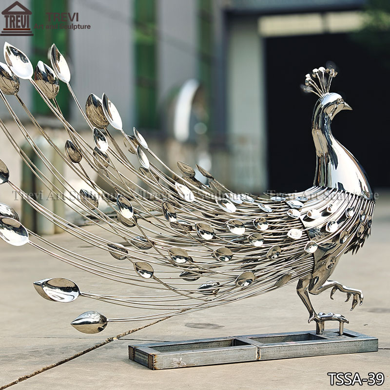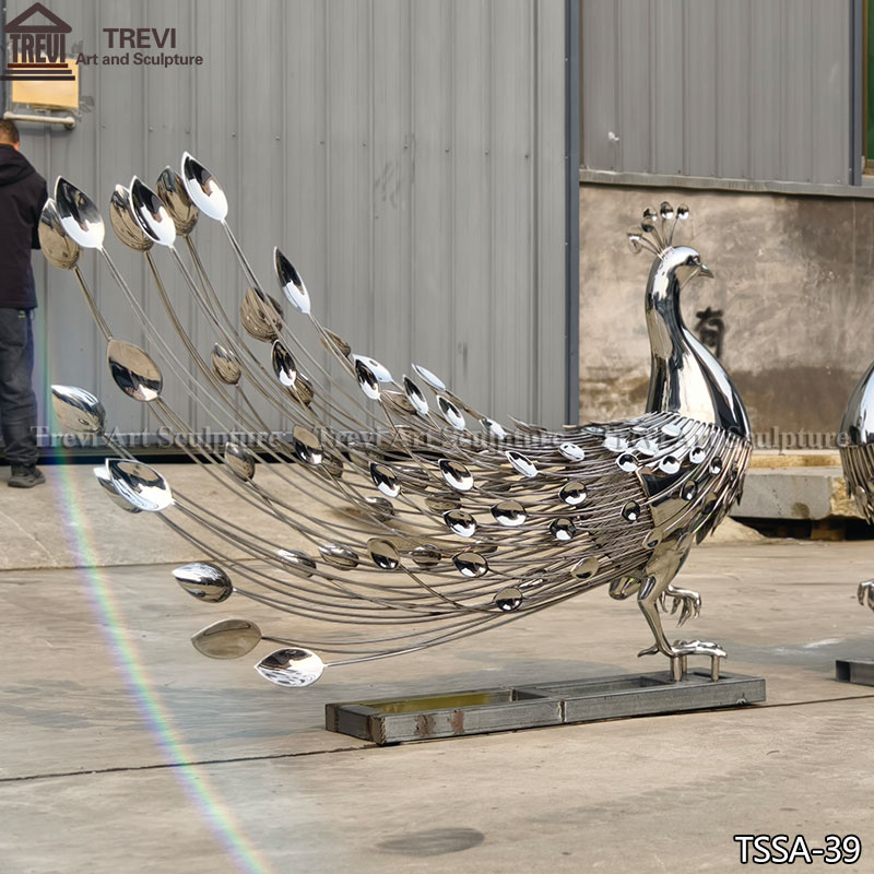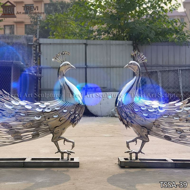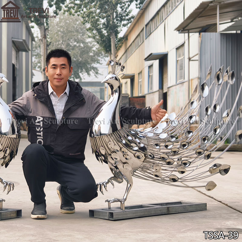 This pair of stainless steel peacock statues is a true work of art, designed and manufactured by our factory.
