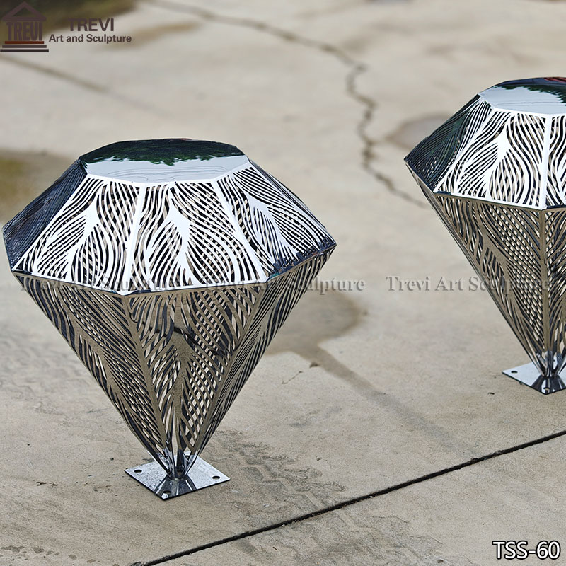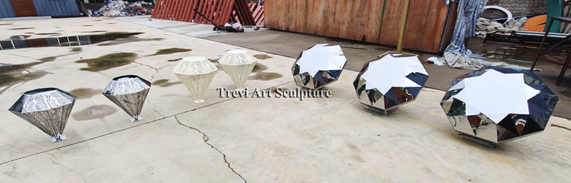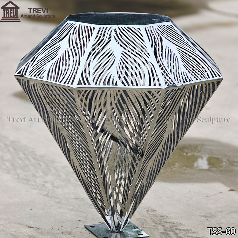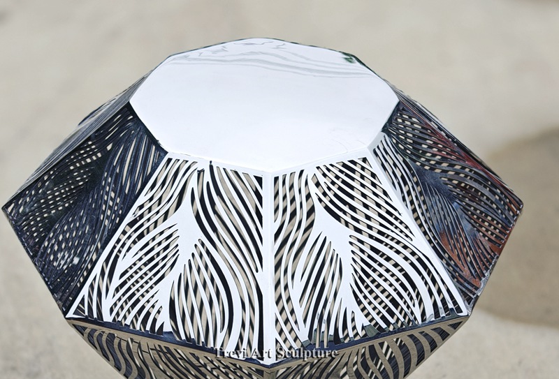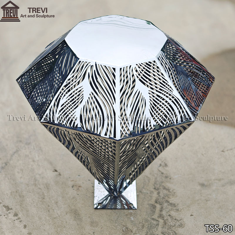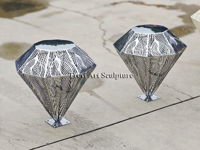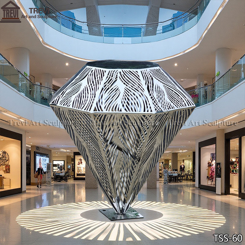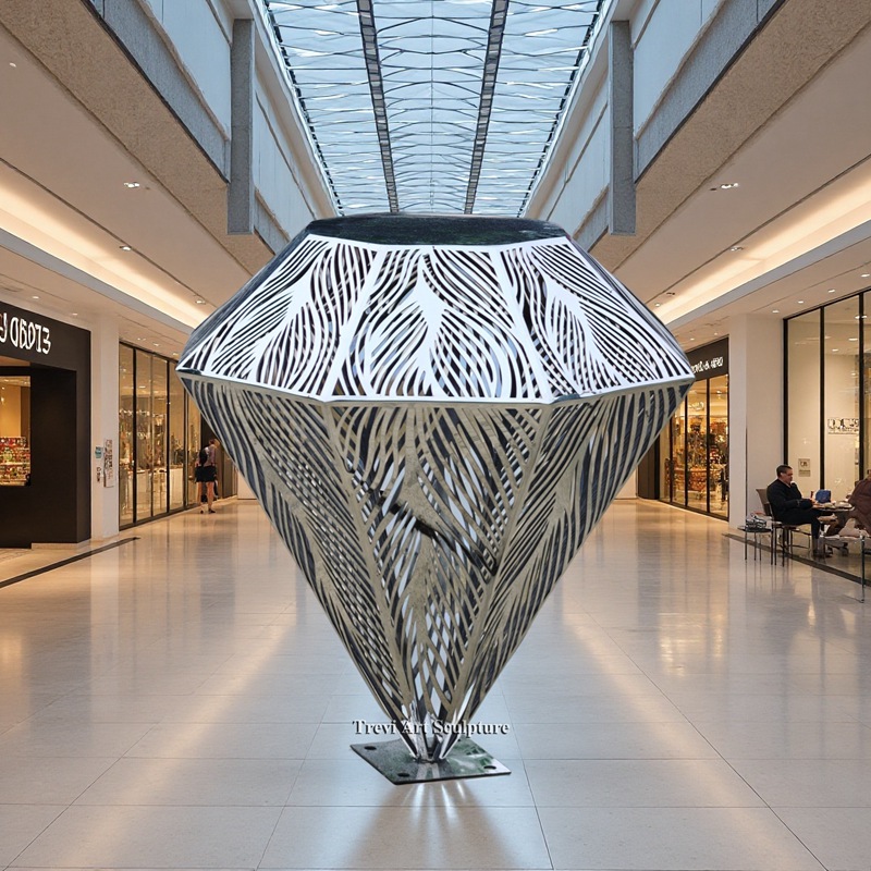 Crafted with precision and artistry, this stainless steel diamond sculpture boasts a sleek, mirror-polished finish that reflects light beautifully, creating a dynamic interplay of shine and shadow. Its intricate openwork design adds a sense of depth and movement, making it the perfect focal point for luxury shopping malls, hotel lobbies, art galleries, outdoor plazas, or private collections.