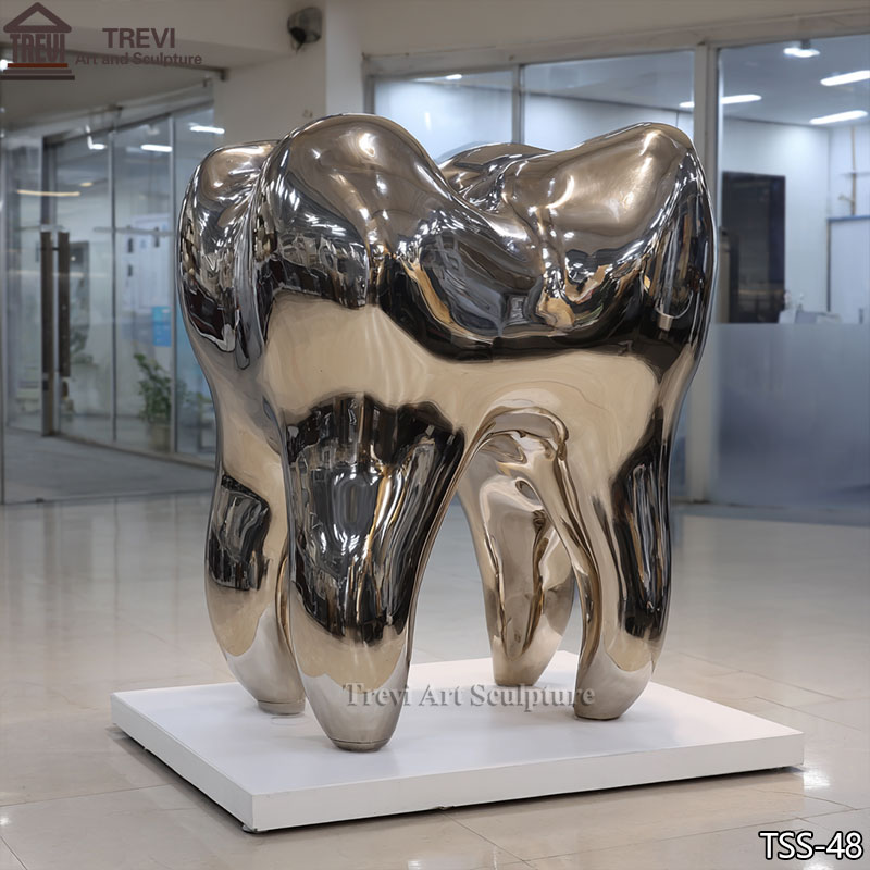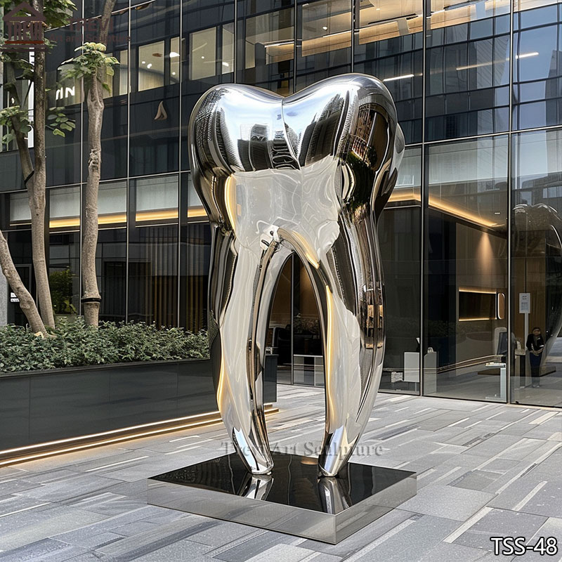 This unique stainless steel teeth sculpture embodies the power and beauty of teeth, utilizing modern technology to symbolize tenacity, health, and the essential foundation that supports life. The sculpture is made of high-quality stainless steel forging, and the surface is finely polished, showing a smooth luster and futuristic sense. The interior is equipped with a solid metal skeleton to ensure structural stability and safety.