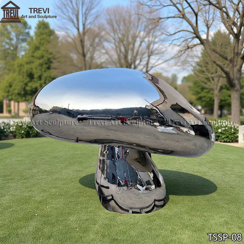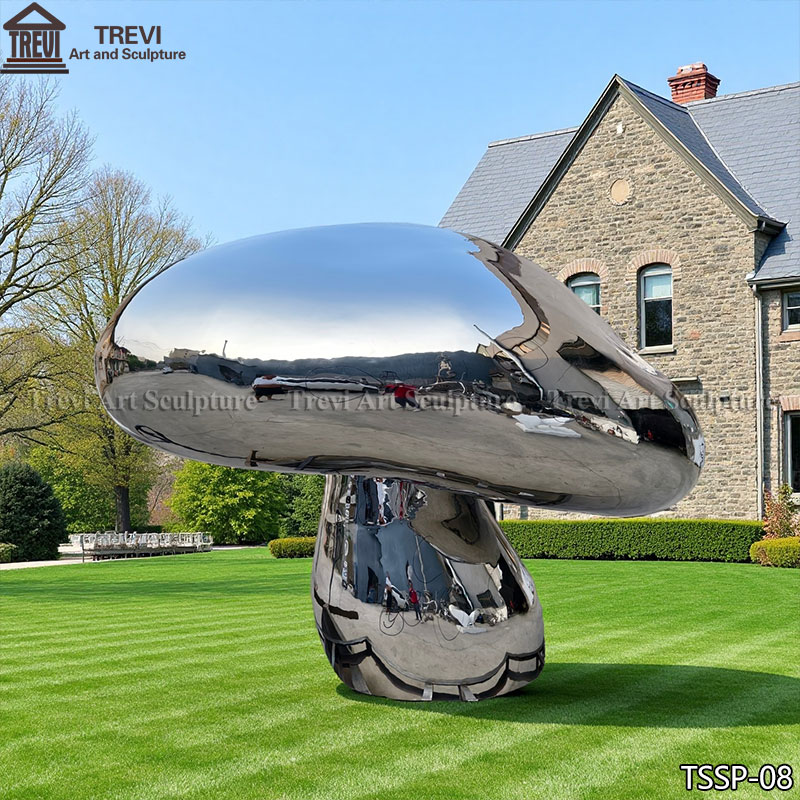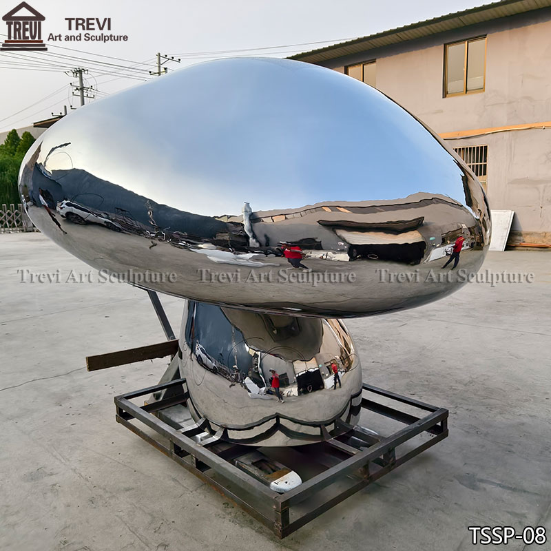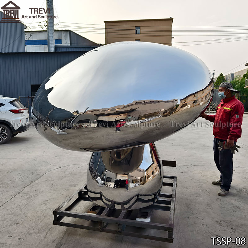Our factory offers a wide range of stainless steel sculptures, from abstract designs to nature-inspired creations like this mushroom.  Contact us for more details on our product catalog and to receive a personalized quote.