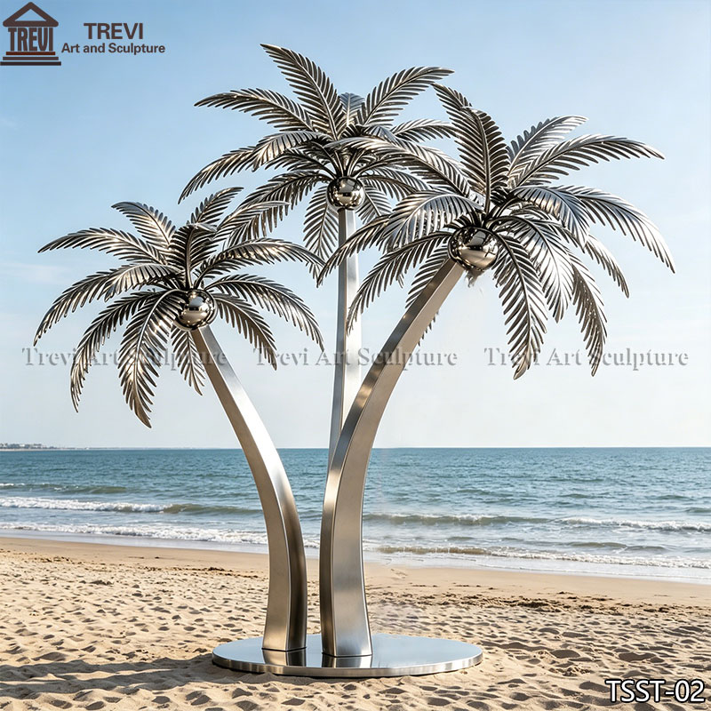 Our factory offers a wide variety of stainless steel palm tree sculpture designs, tailored to meet the needs and aesthetic preferences of diverse projects. From minimalist single-trunk designs to multi-tree landscape arrangements, each piece can be customized to your specific requirements—including height, surface finish (mirror polish, brushed finish, or colored coating), and structural form.