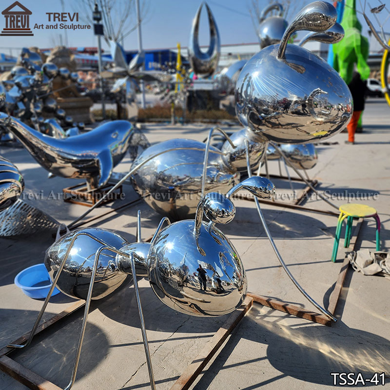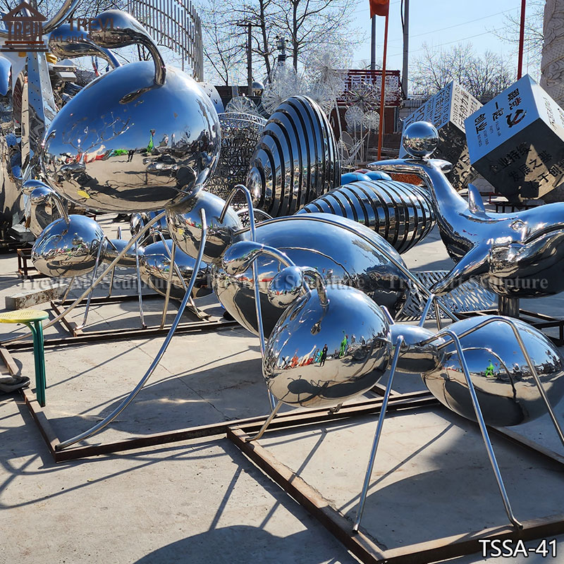 This stunning set of Stainless Steel Giant Metal Ant Sculptures is entirely forged from premium stainless steel. These sculptures showcase exceptional craftsmanship and attention to detail. The lifelike design, combined with a polished surface, gives these ants a sleek, modern look. Ideal for parks, gardens, and public spaces, this sculpture not only captivates attention but also enhances the environment with its unique artistic charm.