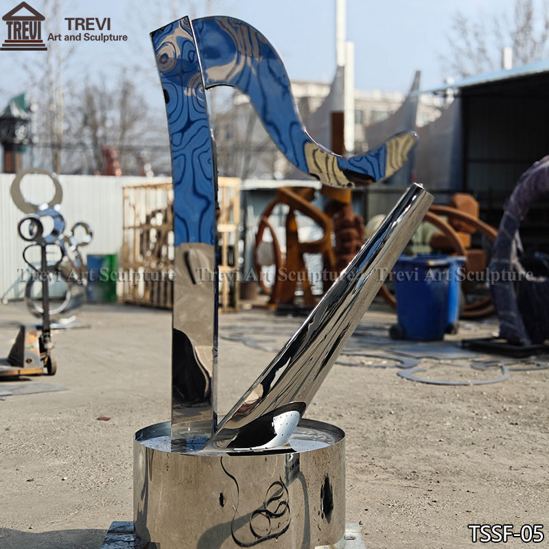 Our factory recently launched an abstract stainless steel harp fountain, featuring a more modern design and futuristic lines. All fountains are forged from high-precision stainless steel and undergo multiple processes, including polishing, water testing, and assembly. During the water testing phase, we carefully adjust the water flow to ensure the fountain’s optimal functionality and aesthetics.
