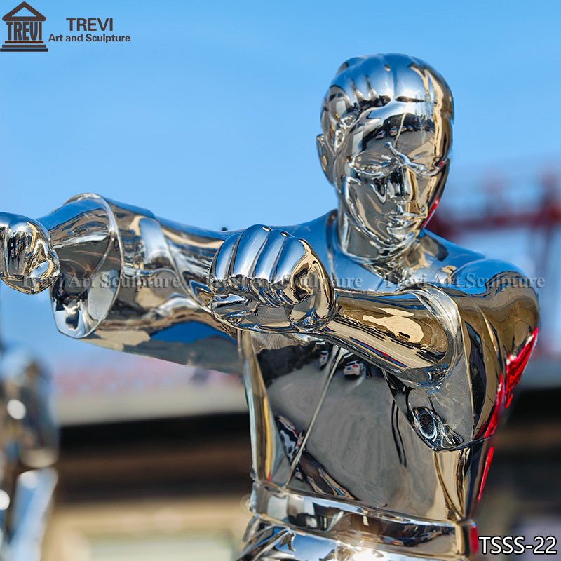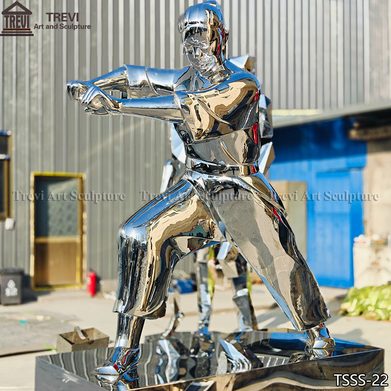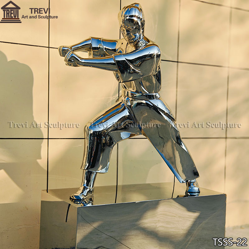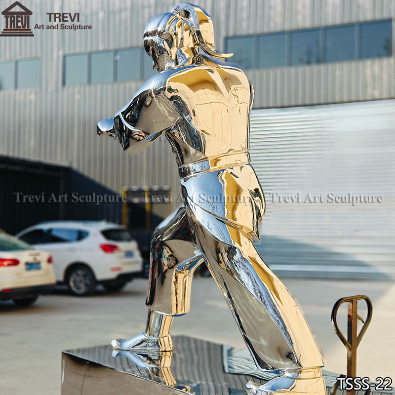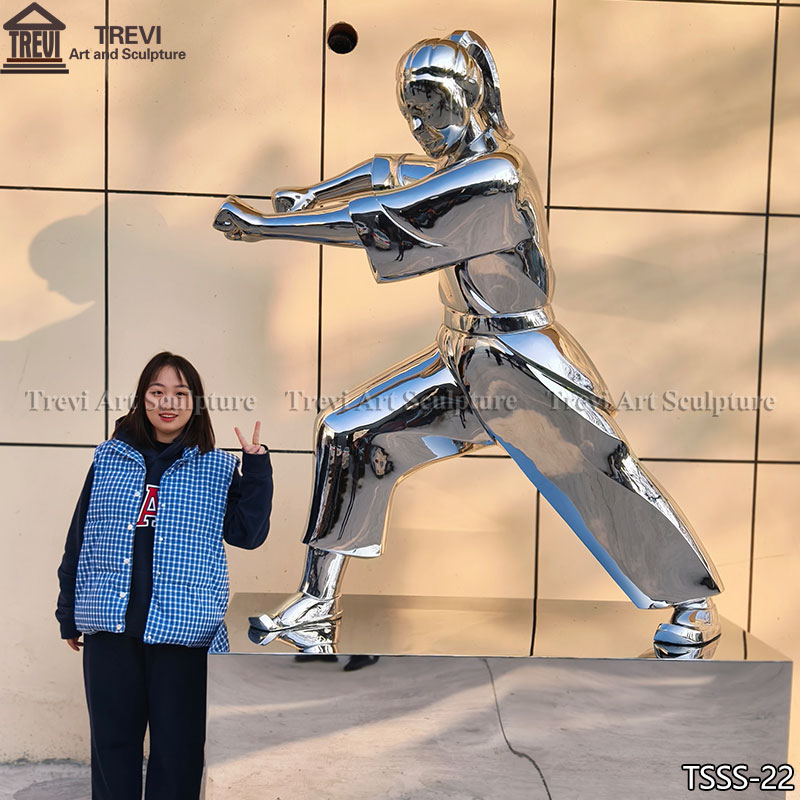 The life-size stainless steel karate statue captures the fluid motion and intense focus of a karate man, making it a perfect statement piece.