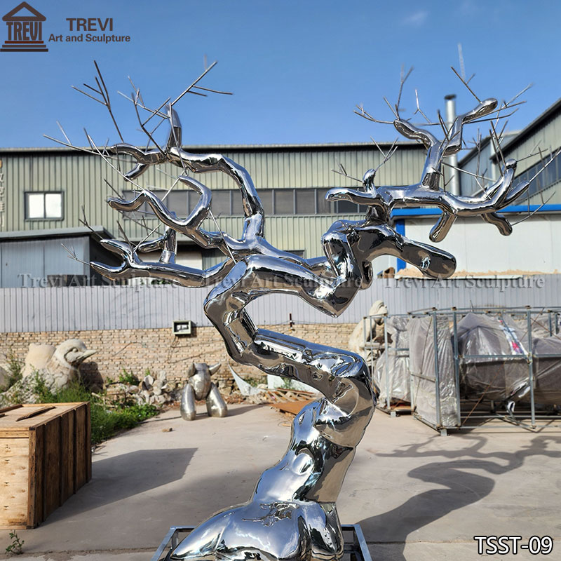 Welcome to Trevi factory, where we showcase a wide range of stunning outdoor stainless steel tree sculpture designs. Our collection includes diverse styles, from realistic tree renditions to abstract creations, offering customization options to suit your unique space. Some designs feature interactive elements, while all sculptures are eco-friendly and low-maintenance. Symbolic and durable, our stainless steel tree sculptures blend artistry with sustainability.