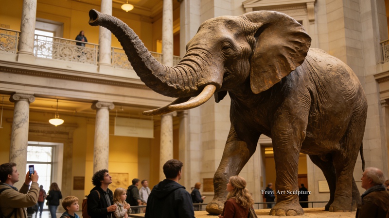 A grand statue showcasing their majestic tusks—reminders of the tragic ivory trade.
