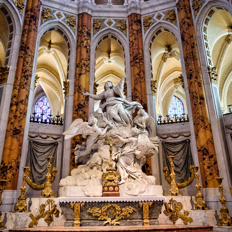 The Assumption of the Virgin Mary is a stunning Baroque sculpture located at Chartres Cathedral in France. This intricate work depicts the Virgin Mary’s ascent into heaven, surrounded by angels, showcasing the artistry and emotional depth characteristic of the Baroque period.