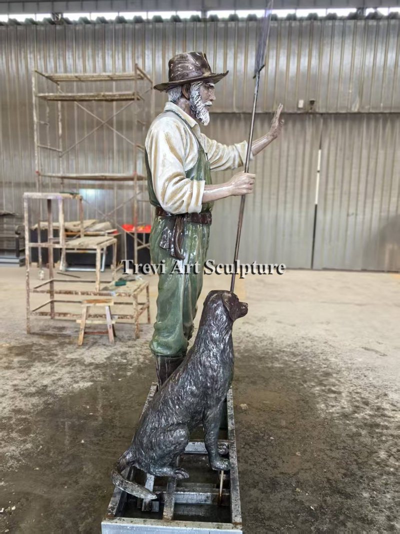 This custom bronze statue captures the essence of rural life, featuring a farmer holding a pitchfork, accompanied by his loyal dog. Each piece is crafted to preserve the authenticity of real-life characters. The advanced bronze coloring technique brings the sculpture to life, replicating the farmer’s attire and expressions with exceptional accuracy.
