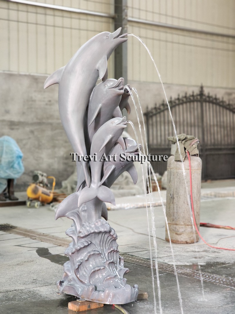 Five dolphins are playing happily on the waves. Our artists cleverly borrowed the splashing water of the dolphins as the water flow of the dolphin Water Fountain. These thin streams form a beautiful arc along with the graceful posture of the dolphins.
