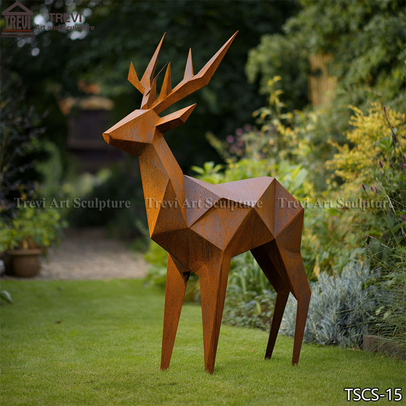 These stunning geometric deer sculptures are crafted from high-quality corten steel. These sculptures boast an abstract, angular design that captures the essence of the deer’s graceful form in a contemporary style. Their dynamic postures convey a sense of movement and vitality, making them a perfect centerpiece for gardens, courtyards, plazas, or other outdoor spaces.