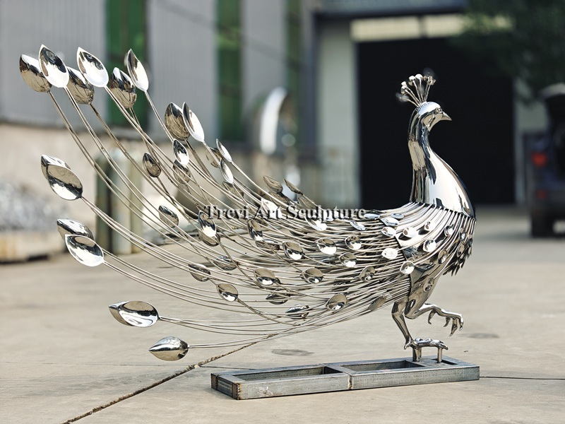This pair of stainless steel peacock statues is a true work of art, designed and manufactured by our factory.