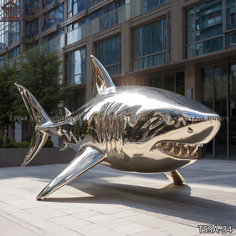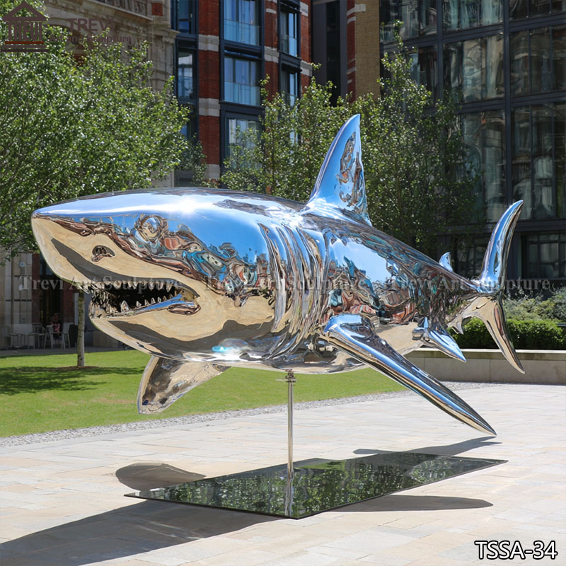 The stainless steel sculptures in our factory are made from an integral forging process. Each metal shark sculpture has a smooth shape, and the surface is mirror-polished, showing an amazing gloss, and the overall effect is very eye-catching. In addition, we also provide a variety of styles of stainless steel shark sculptures to meet the needs of different customers and enhance the artistic atmosphere of the space.