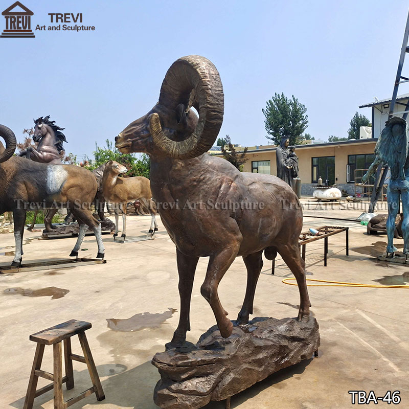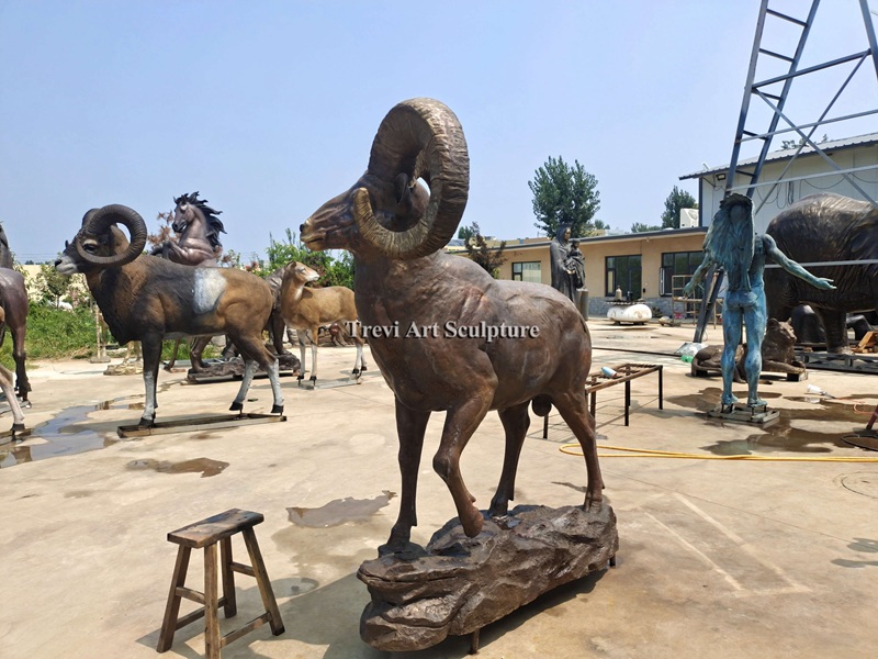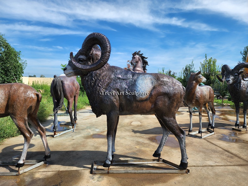 This bronze Bighorn Sheep sculpture features lifelike details, perfectly recreating the majestic presence of a North American bighorn sheep. Standing tall, its majestic, curved horns symbolize strength and resilience, brimming with dynamism and vitality. It’s perfect for parks, exhibition halls, and other settings, promoting the concept of harmonious coexistence between man and nature.