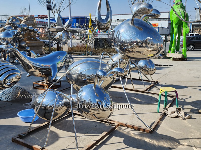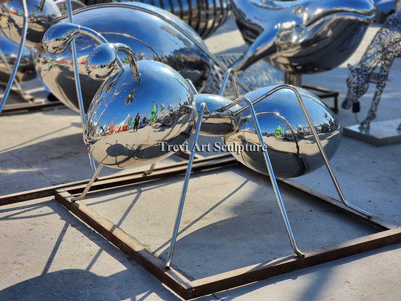 This stunning set of Stainless Steel Giant Metal Ant Sculptures is entirely forged from premium stainless steel. These sculptures showcase exceptional craftsmanship and attention to detail. The lifelike design, combined with a polished surface, gives these ants a sleek, modern look. Ideal for parks, gardens, and public spaces, this sculpture not only captivates attention but also enhances the environment with its unique artistic charm.
