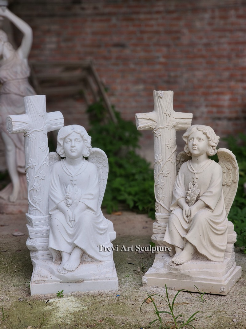 A smaller, playful design, this statue features a cherub embracing a cross. It’s a lovely choice for families seeking a lighter, more hopeful representation.